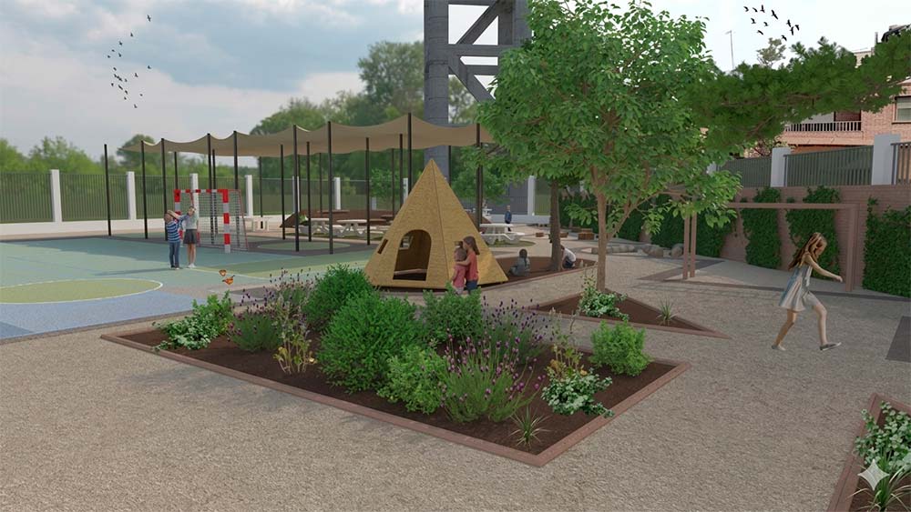 Una de las principales claves de la transformación es la renaturalización de los patios. Al incorporar más vegetación, huertos escolares, pérgolas y otros elementos naturales, los patios se convierten en espacios saludables que mejoran no solo el confort climático, sino también el bienestar emocional de los estudiantes.
